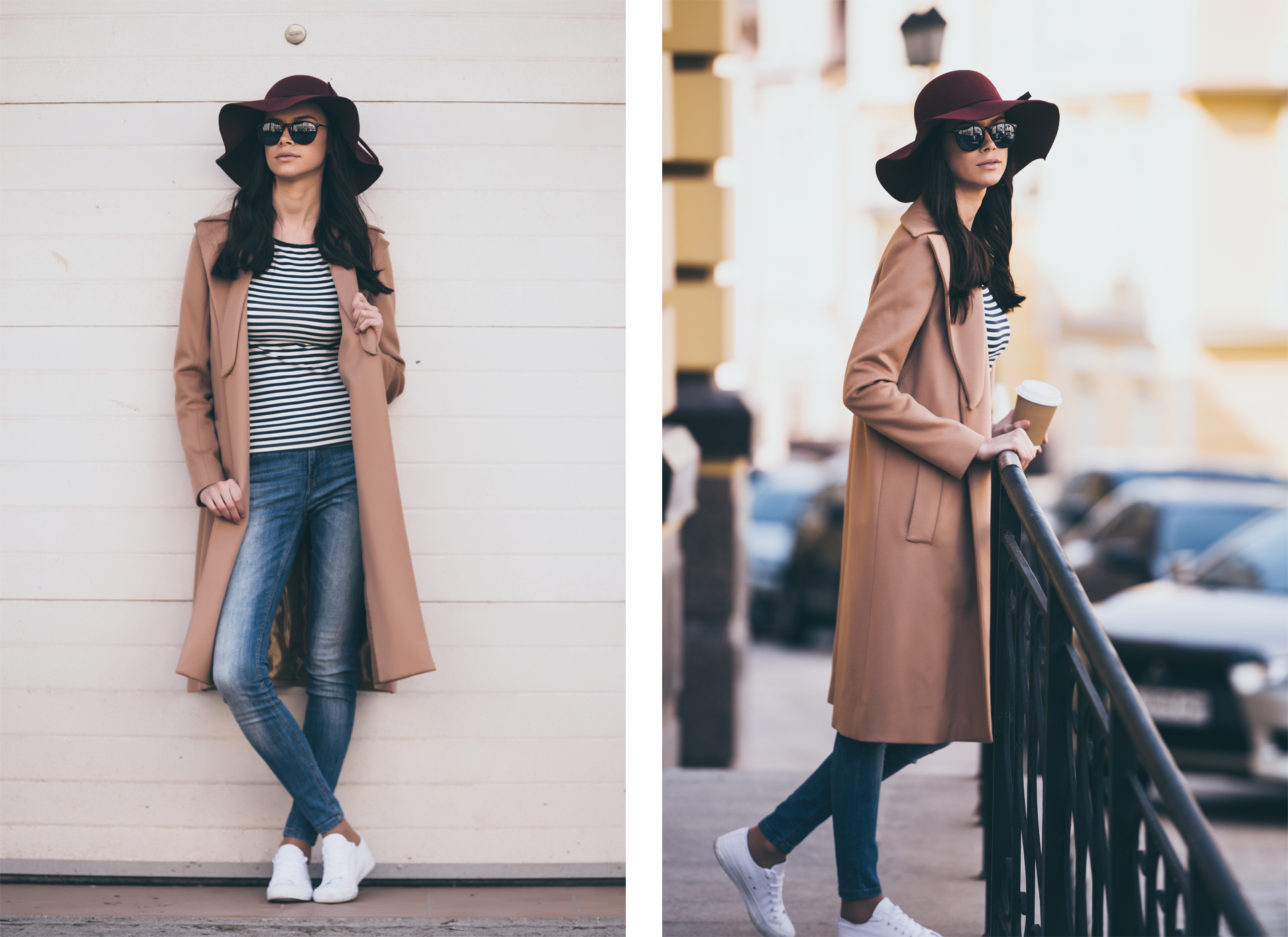 Tan pronto como llega el fin de semana, toca escaparse de la ciudad. Inspírate con los tonos otoñales y combínalos con un clásico que nunca falla -jeans y toques azul marino. Si además le añades un sombrerito elegante, llevarás un conjunto súper cuqui. Y, por supuesto, que ni una gota de lluvia estropee tu peinado.